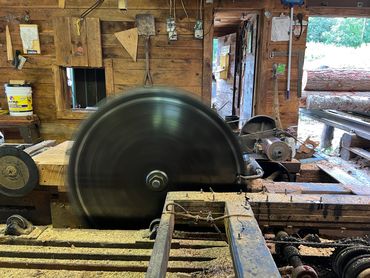 A historic circular sawmill, producing and stocking common board size lumber, from locally-sourced SoVt Timber.